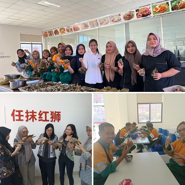 At the event site, employees participated with great enthusiasm, creating a lively and joyful atmosphere. Many Indonesian colleagues were making zongzi by hand for the first time. Under the guidance of experienced colleagues, everyone carefully placed glutinous rice and fillings into freshly washed bamboo leaves, folded them skillfully, and finally tied them tightly with string to form plump and neatly wrapped zongzi.
